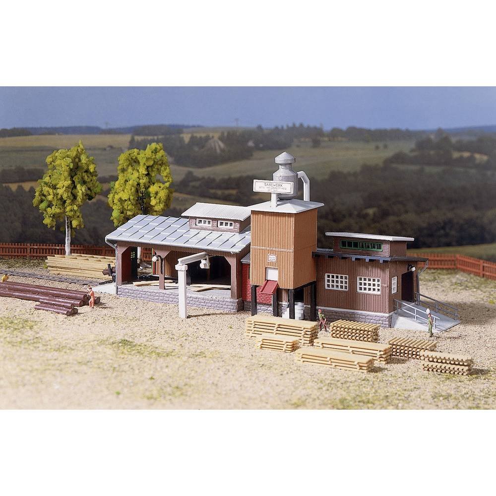 De houtzagerij naar het voorbeeld van die in Pockau. Met poorthal, spaantoren met handmatig bedienbare schuiven, machinekamer en basismateriaal. Afm. 285 x 115 x 110 mm….
