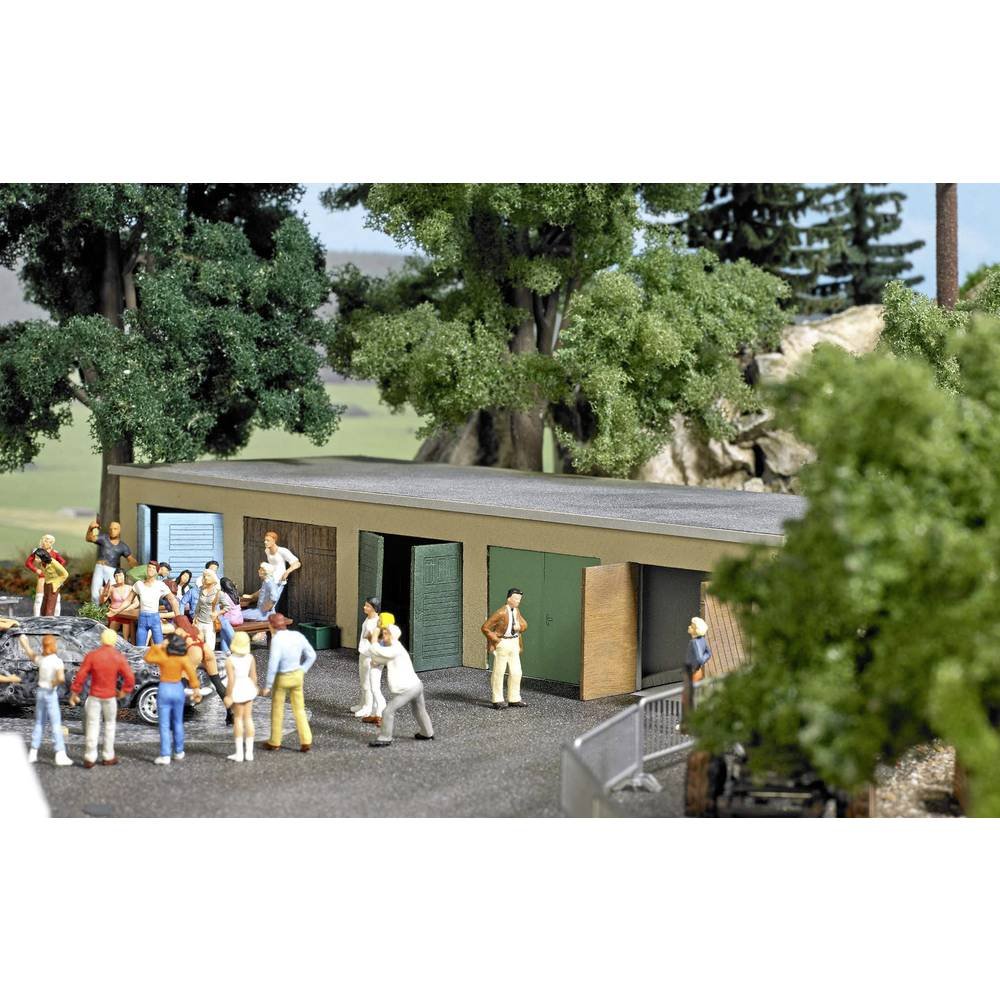 Bouwpakket voor een betonnen complex met 5 garages en echte houten deuren, al kant-en-klaar kleurig geverfd….