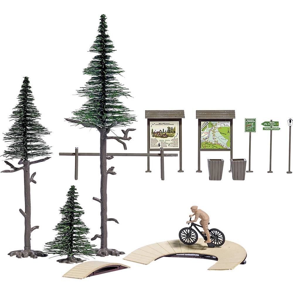 Met een swing somt de biker in de steile bocht en verder over de helling! Bouwpakket voor het vormgeven van een mountainbike-scène in het bos.