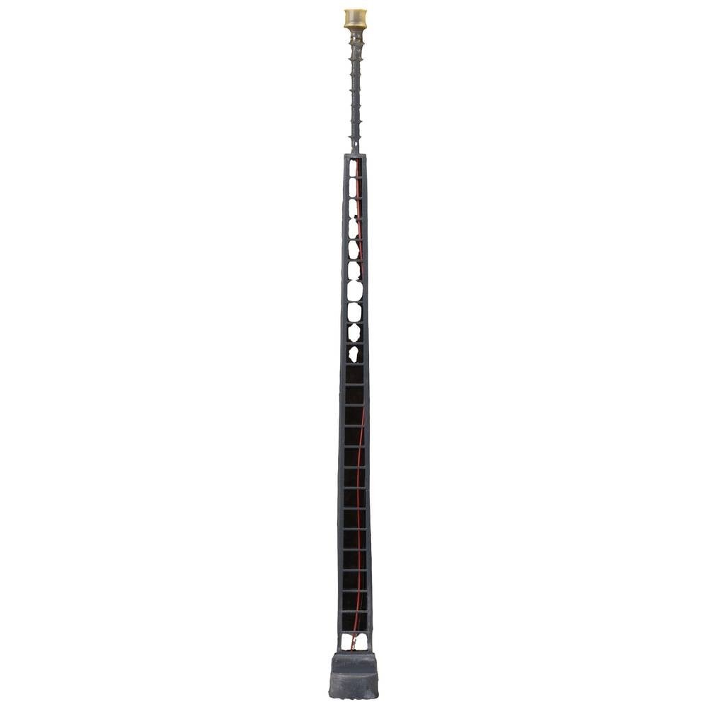 Model van een veelgebruikte opzetlamp met platte vakwerkmast van metaal. Bijzonder geschikt voor verlichting van taferelen in de buurt van het spoor, zoals stations, werkplaatsen of spoorterreinen. De…