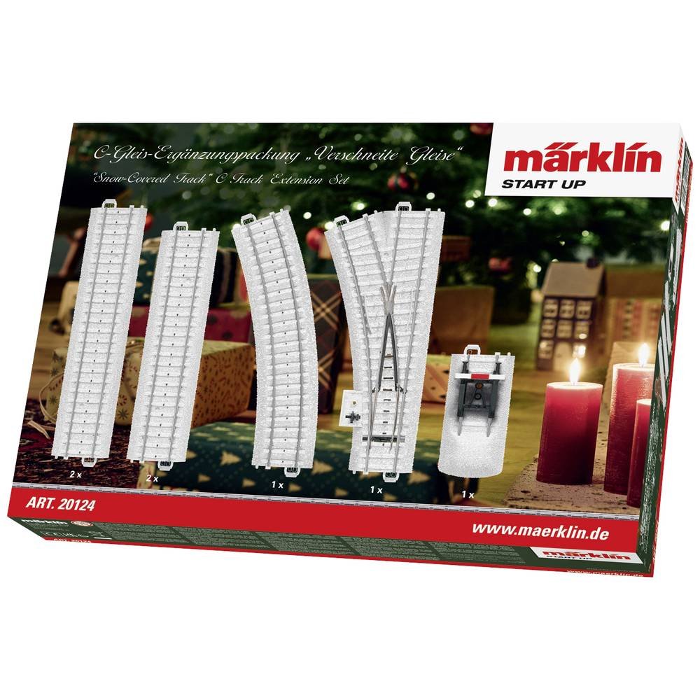 Diverse C-rails in besneeuwde uitvoering. Ideaal ter uitbreiding van de kerstmis startset Märklin art.nr. 29124….