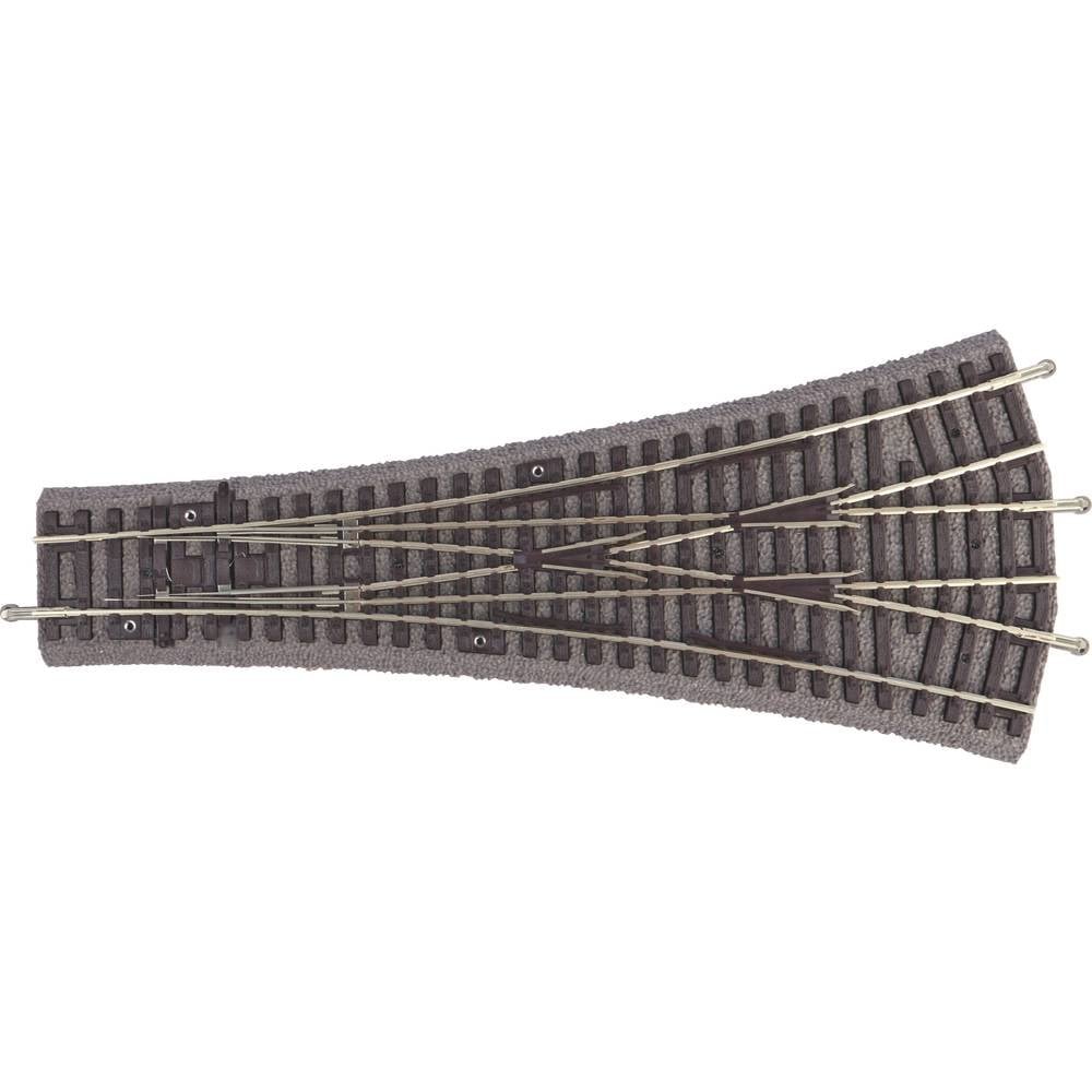Piko A-rails met ballastbed, gedetailleerde bielzen en realistische, scherpe grindimitatie en kleurafwerking. Driewegwissel met telkens 15° aftakkingen handbedrijf met positionering….