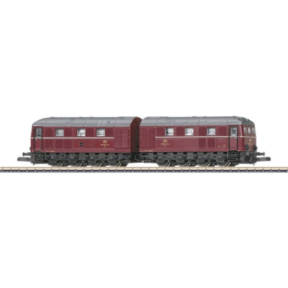 Voorbeeld: Dubbele diesellocomotief serie 288 van de Deutsche Bundesbahn (DB) in purperrode kleurstelling van tijdperk IV. Ombouwversie met Maybach-motor zonder dakbevestiging. Met 4 zandbakken per…