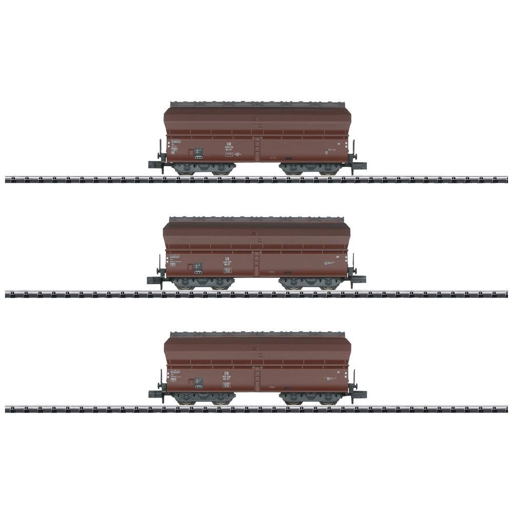 Conrad NLVoorbeeld: 3 vierassige zelflossers van het type FAD-50 Ootz van de Deutsche Bundesbahn (DB). Uitvoering met twee ontlastkleppen per lengtezijde en een remplatform aan de kopse kant. Wagons met…