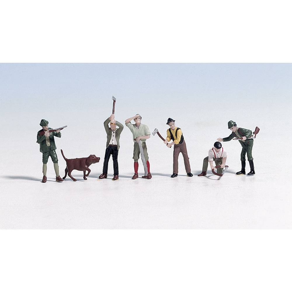 4 houthakkers, 2 jagers en een jachthond (allen beschilderd) voor levendige scènes in het bos….