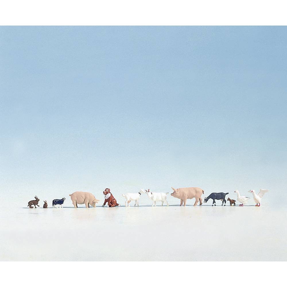 12 dieren (allen beschilderd) die passen bij elke boerderij: 2 varkens, 2 ganzen, 4 geiten, een schaap, twee konijnen en een hond….
