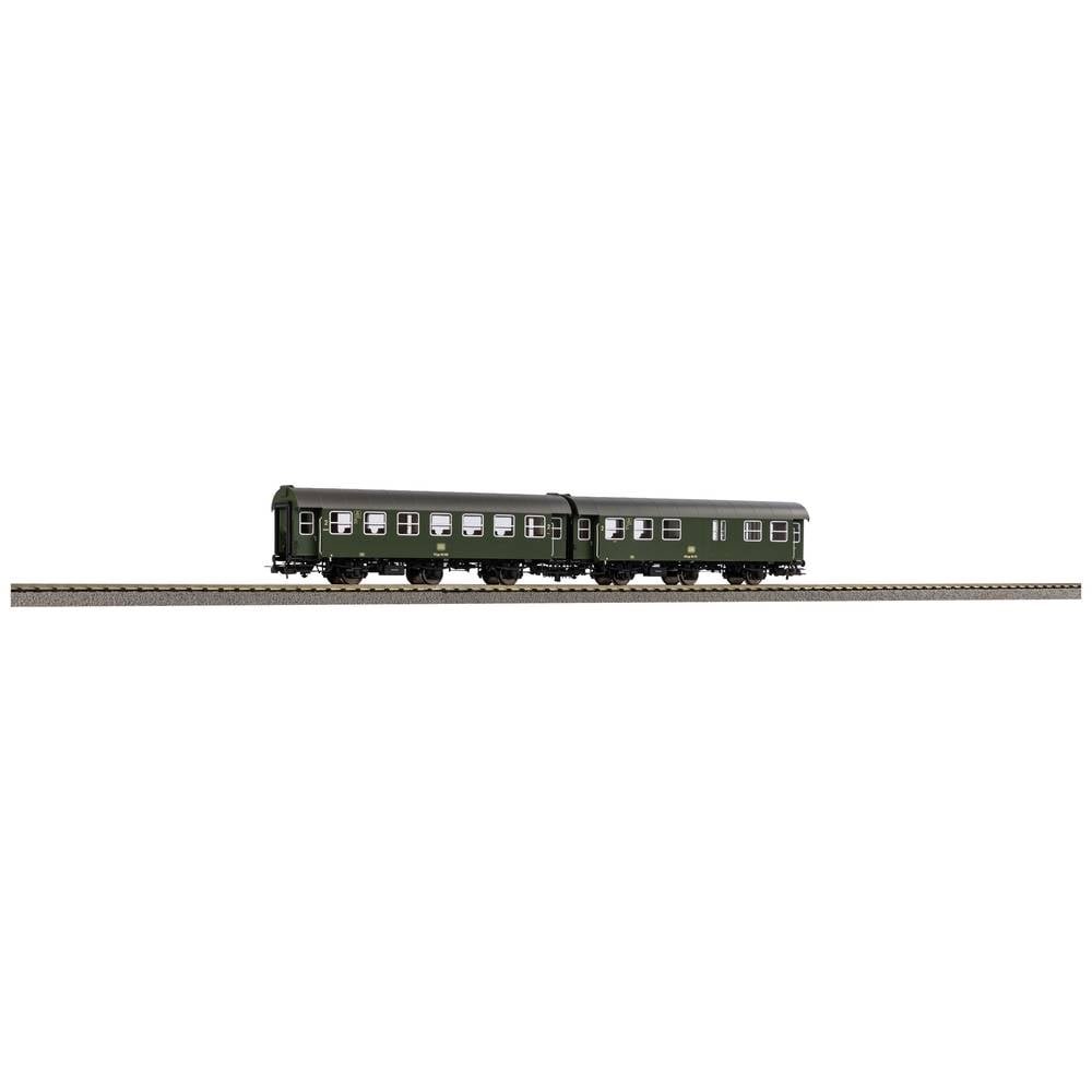 Tweedelige set van de kortgekoppelde ombouwwagens met een 2e Klas rijtuig en een 2e Klas rijtuig met bagagebak van de DB in tijdperk IV. Anders dan bij het voorbeeld is voor de PIKO-modellen van de…