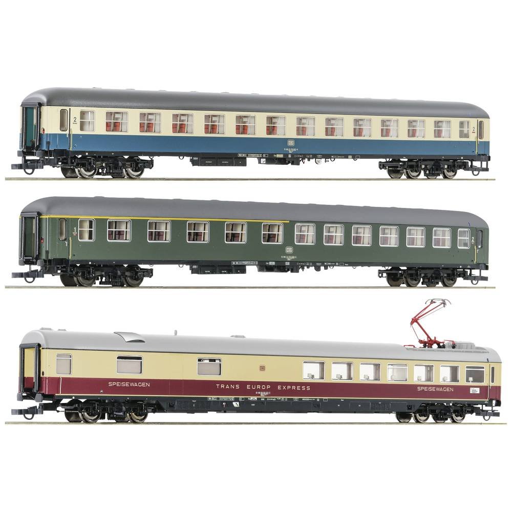 Roco 6200052 H0 set van 3: D 377 „Hispania-Express” van de DB 2e klas Büm 234, 1e/2e Klasse ABüm 225, restauratierijtuig WRümz 135