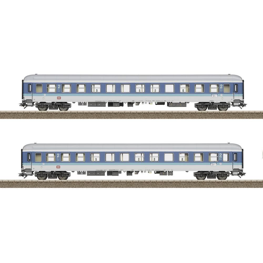 Voorbeeld: Twee personenrijtuigen van verschillende soorten van de InterRegio van de Deutsche Bundesbahn (DB). Een personenrijtuig type Bimz 264.7, 2. Klasse en een personenrijtuig met fietsdeel type…