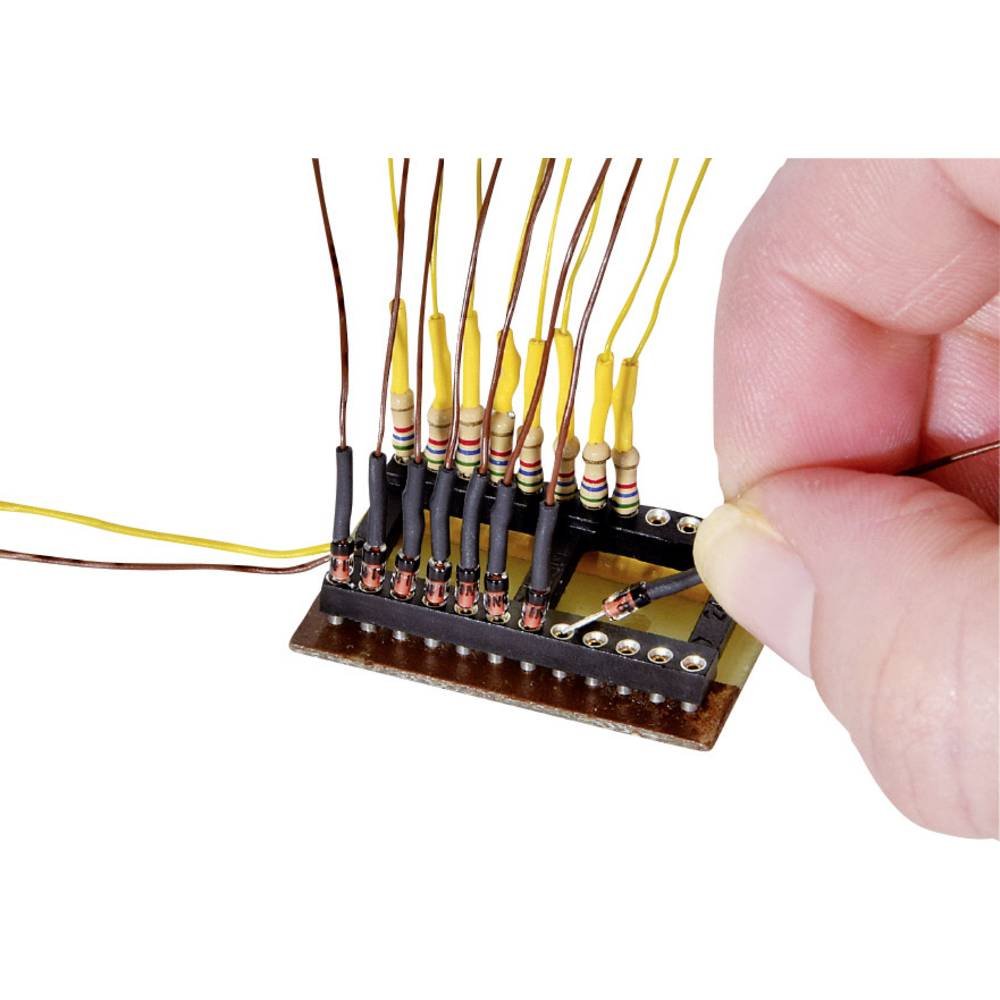 Verbindt maximaal 12 stroomverbruikers. Eenvoudig insteken van weerstanden en dioden in de connector. Geen stekkers, schroefklemmen of solderen nodig….